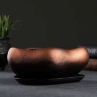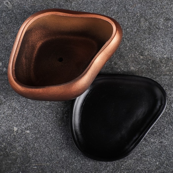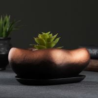 Горшок для кактусов и суккулентов «Бонсай», 600 мл, 17?14?8 см, керамический, с поддоном, цвет бронзовый