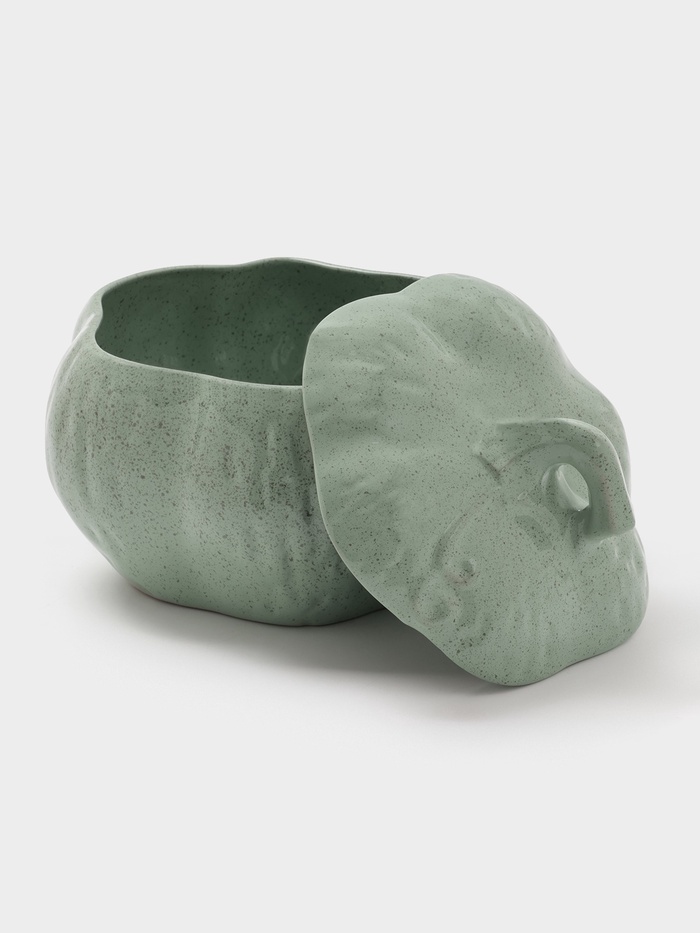 Керамический горшок в форме тыквы — не просто посуда для запекания, а центр притяжения на кухне и праздничном столе. Объём 2,5 л — в самый раз для семейного ужина: запечённые овощи, рагу, курица с картошкой или сытная запеканка. Зелёный цвет и натуральная форма добавляют блюду характер — и хозяйке — удовольствие от подачи.