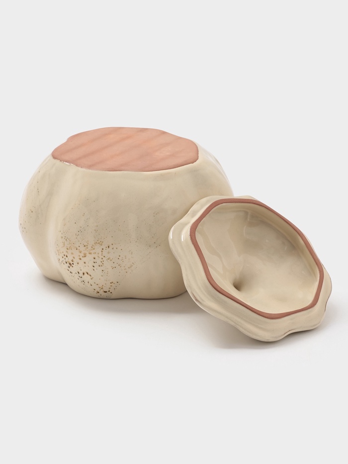 Округлая форма повторяет природные линии, создавая приятный тактильный опыт. Бежевый цвет с естественными вариациями оттенков подчеркивает ручной характер работы. Крышка плотно прилегает, предотвращая испарение жидкости. Горшок становится многофункциональным элементом кухни — от запекания овощей до приготовления крем-супов с последующей подачей на стол.