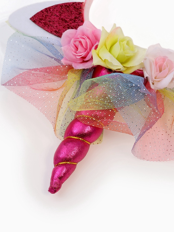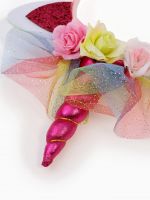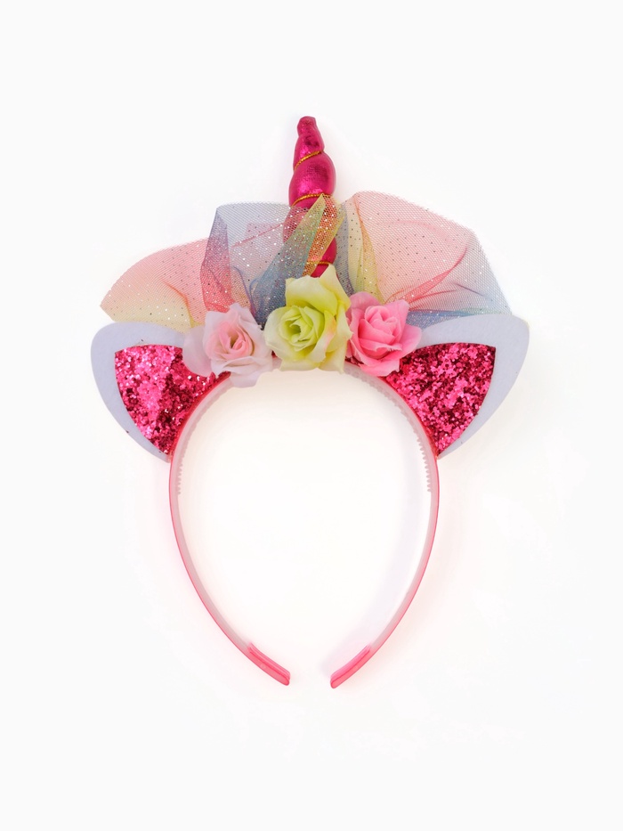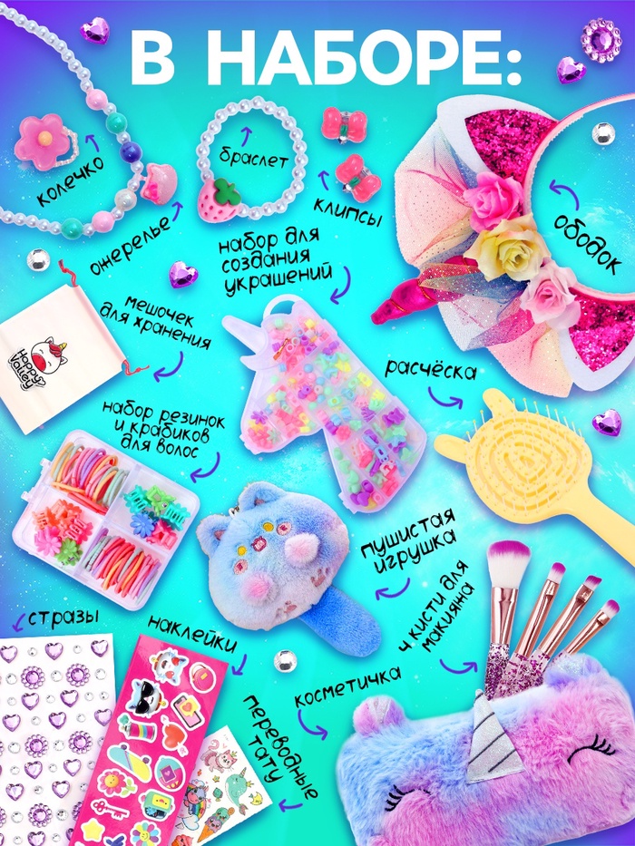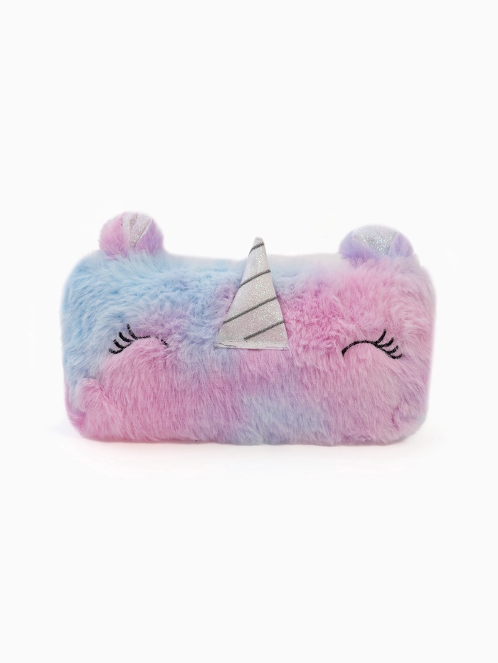 - Яркий ободок с милым единорогом станет изюминкой любого образа. Пушистая косметичка и мешочек для хранения с тематическим принтом помогут организовать все важные мелочи.