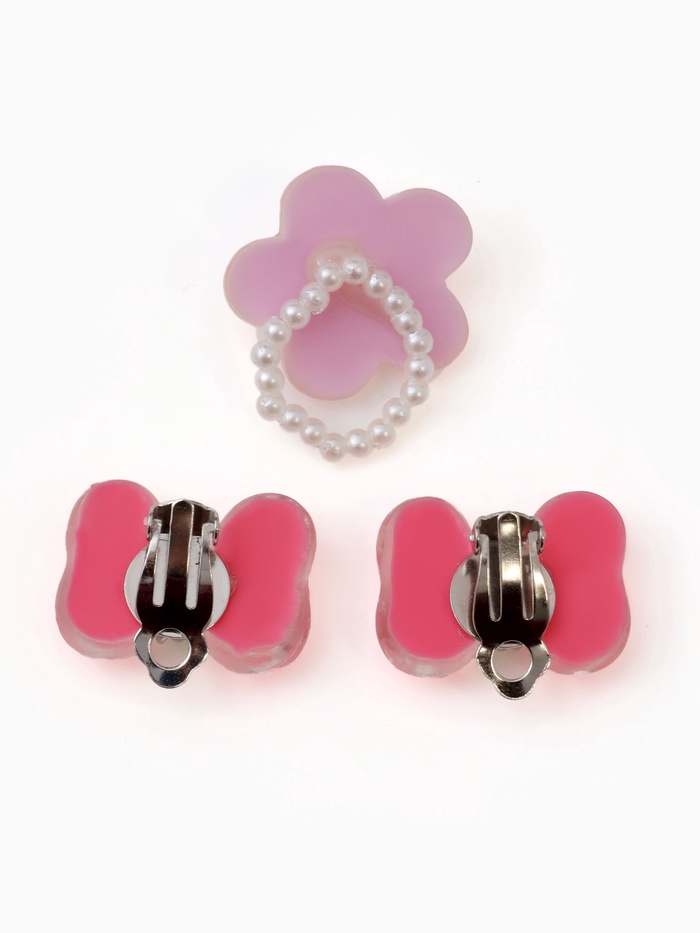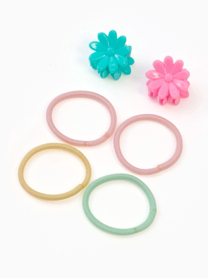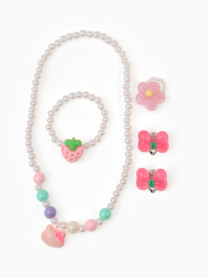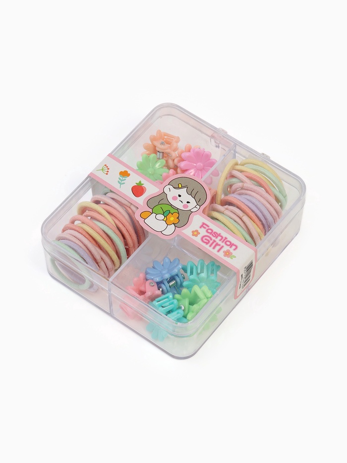 - Набор резинок и крабиков для волос, мягкая расчёска, а также комплект украшений —ожерелье, браслет, колечко и клипсы — помогут дополнить любой наряд.