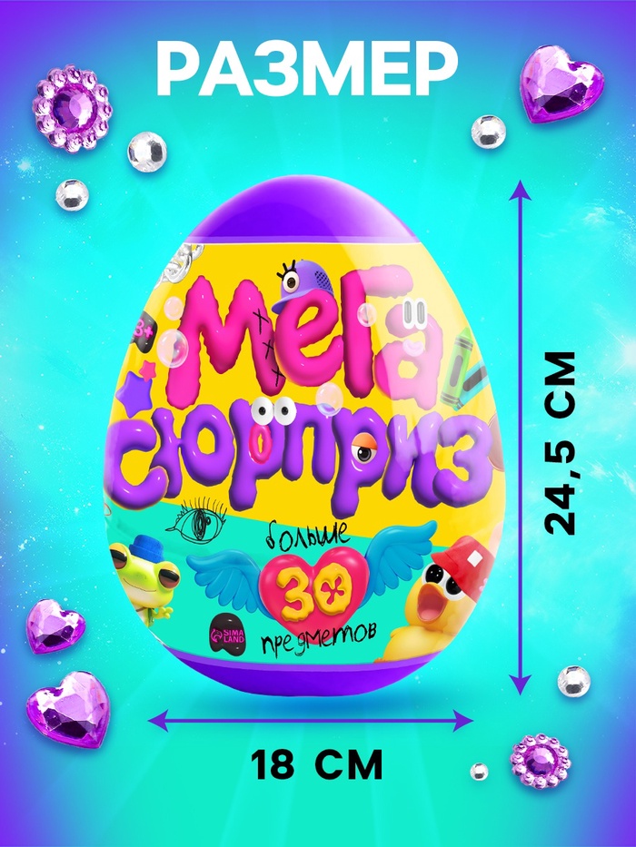 Игрушка - сюрприз в яйце «Мега-сюрприз», больше 30 предметов, фиолетовый