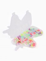 - Органайзер с бусинами предлагает погрузиться в увлекательное творчество. С помощью наклеек, страз и переводных тату можно создавать яркие образы и декор.