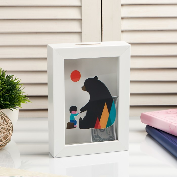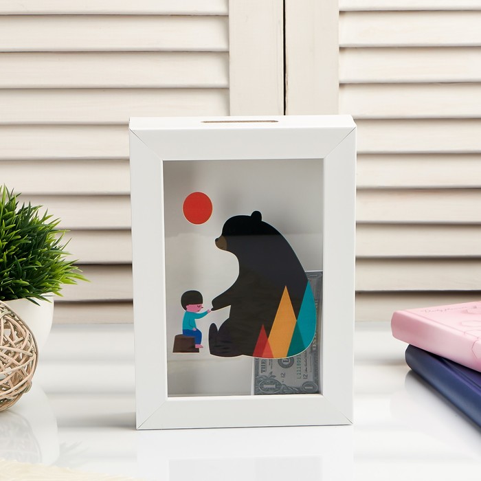 Интерьерная копилка для купюр и монет «Малыш и медведь», пластик, 17?12?3.8 см