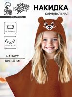 Карнавальная накидка «Медведь», рост 104-128 см, длина с капюшоном 60 см, без капюшона 35 см, коричневый