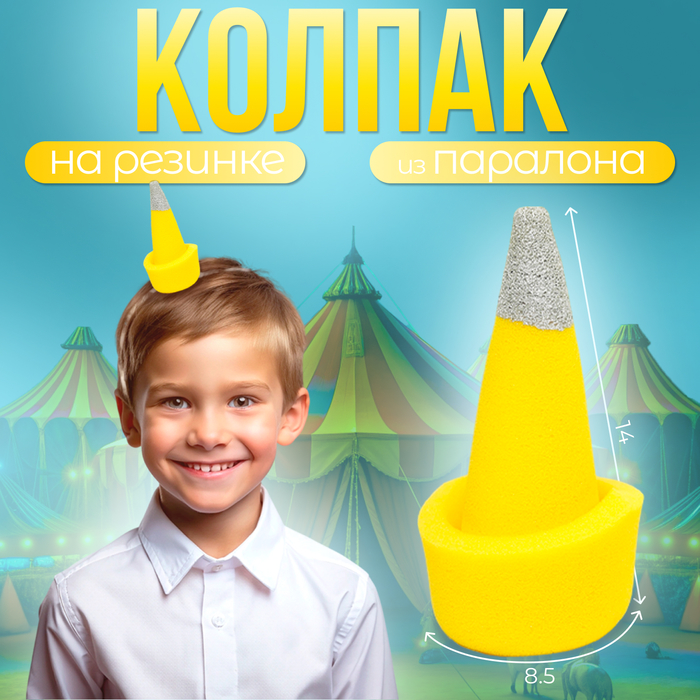 Карнавальный колпак «Клоун» на резинке, жёлтый, поролон