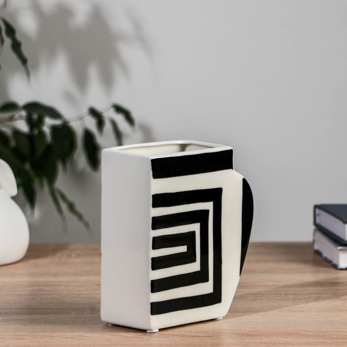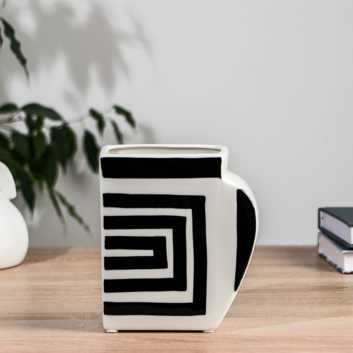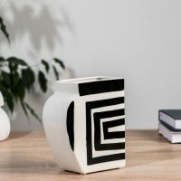 Керамическая ваза декоративная настольная «Пикассо» (ручная роспись), чёткие линии, для цветов, сухоцветов, h-15 см, чёрно-белый