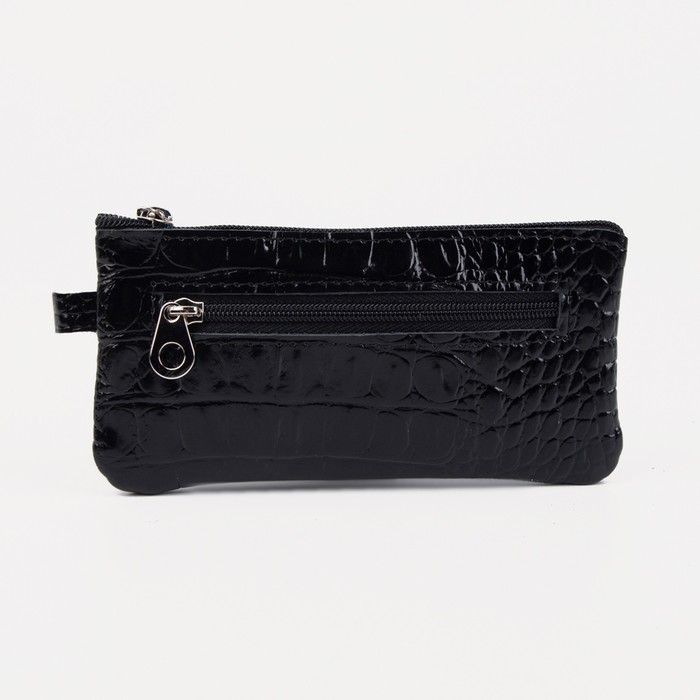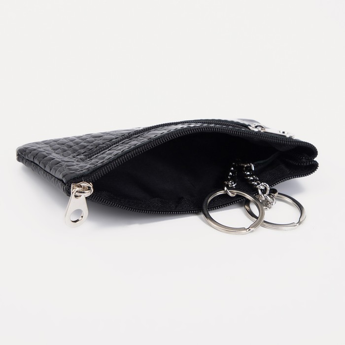 Ключница карманная на молнии, длина 13, 5 см, кольцо, цвет чёрный