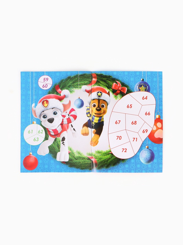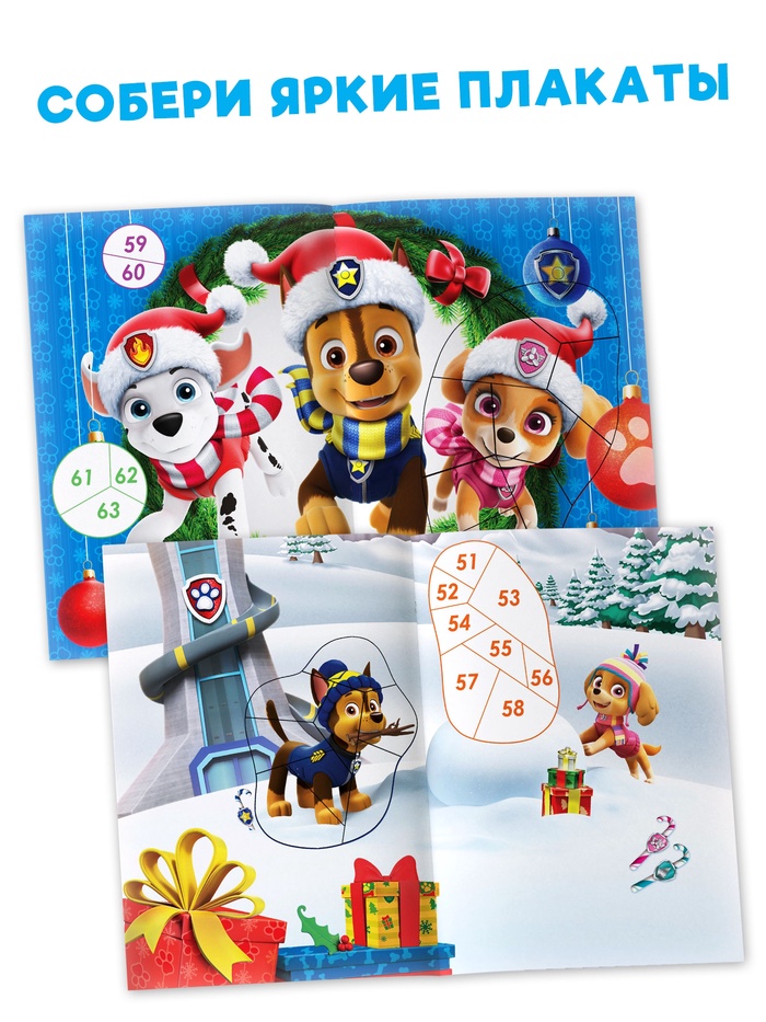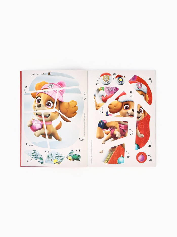 - Каждая страница наполнена новогодними сценами с участием героев мультфильма «Щенячий патруль».
