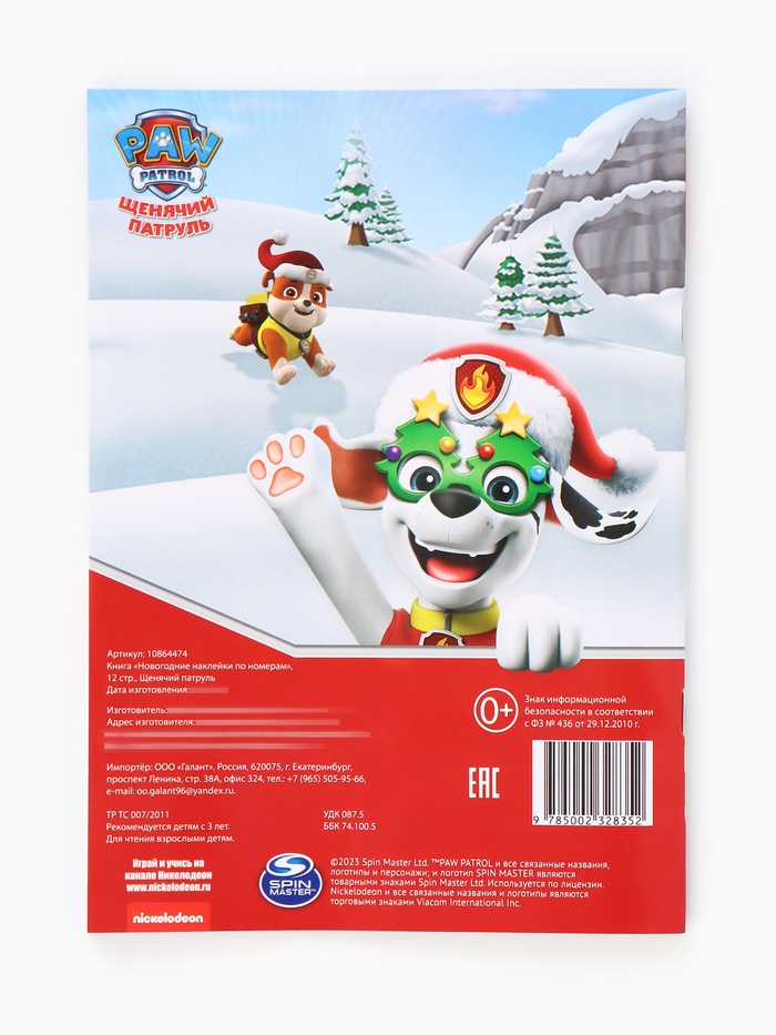 Книга детская «Новогодние наклейки по номерам», 12 стр., Щенячий патруль