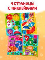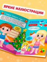 Книга с волшебными историями тематическими наклейками поможет скоротать время до Нового года и потренировать полезные навыки.