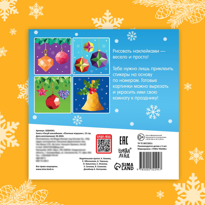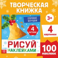 Книжка с наклейками «Рисуй наклейками. Ёлочные игрушки», 12 стр., 100 наклеек