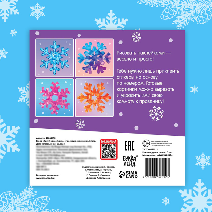 Книжка с наклейками «Рисуй наклейками. Красивые снежинки», 12 стр., более 120 наклеек