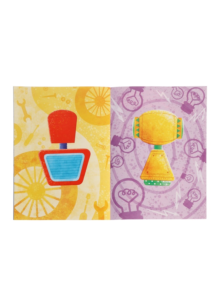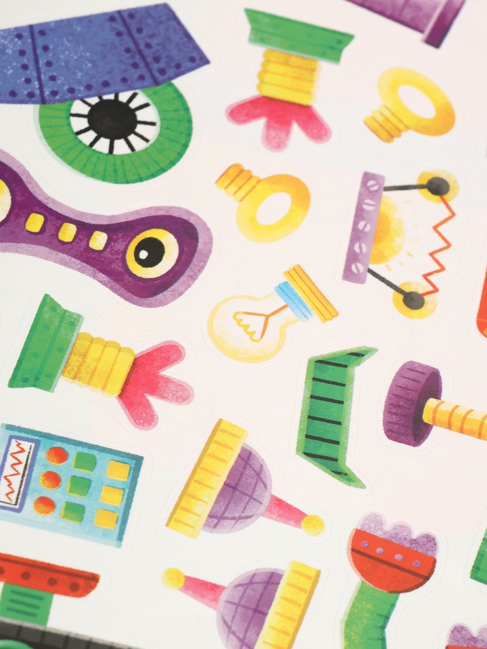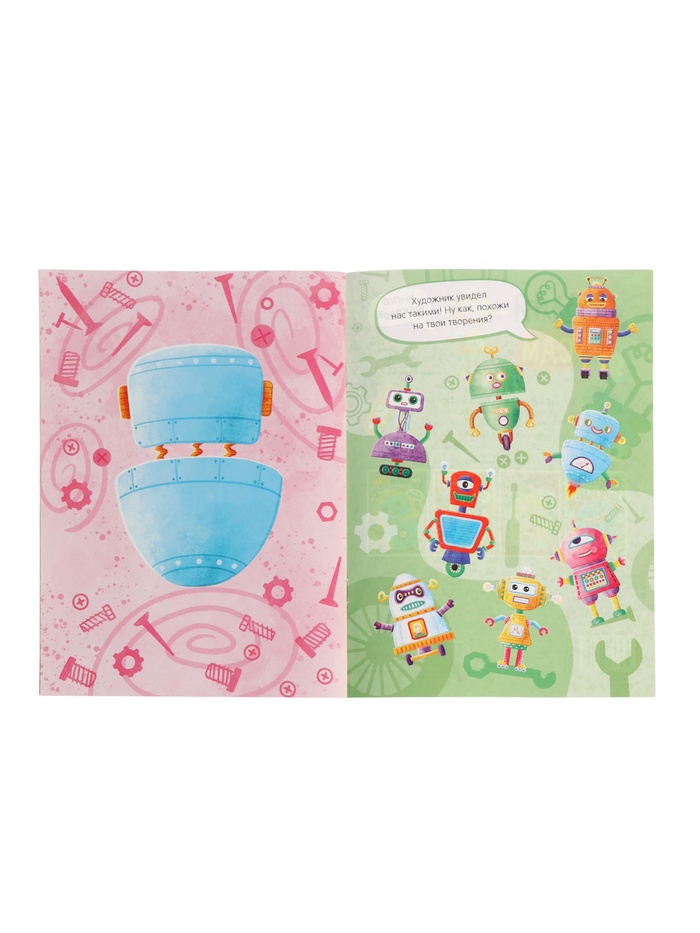 - 8 страниц с заданиями для создания уникальных роботов с помощью наклеек.