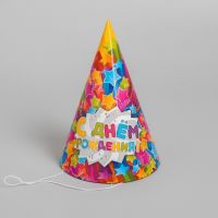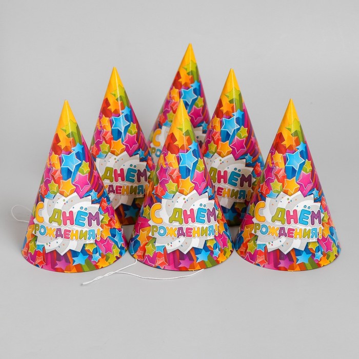 Колпак бумажный «С днём рождения!», звёзды, набор 6 шт., 16 см