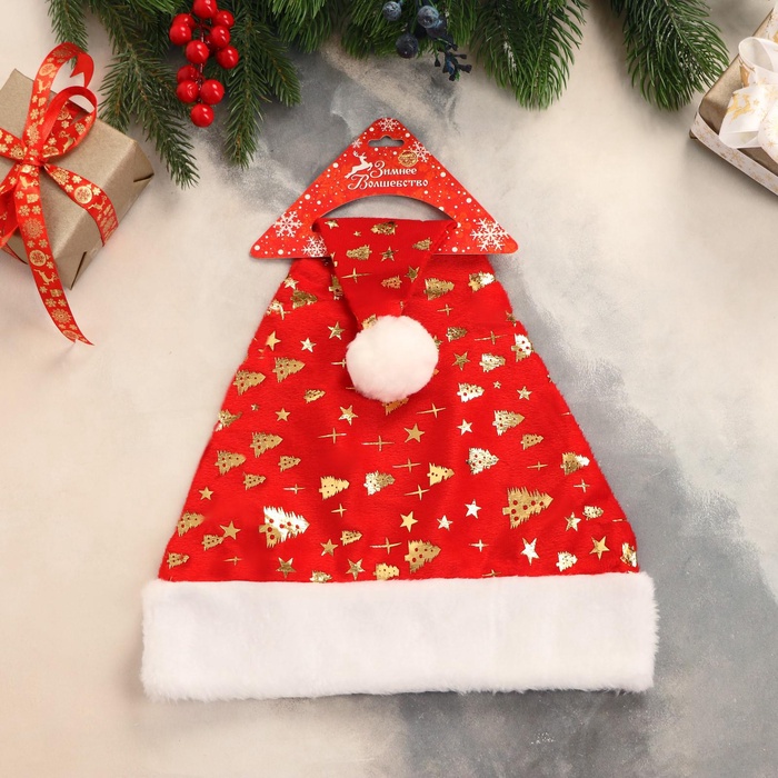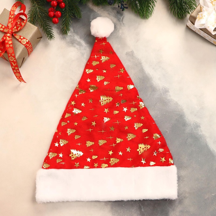 Колпак новогодний «Ёлочки и звёзды» 29?40 см, красный