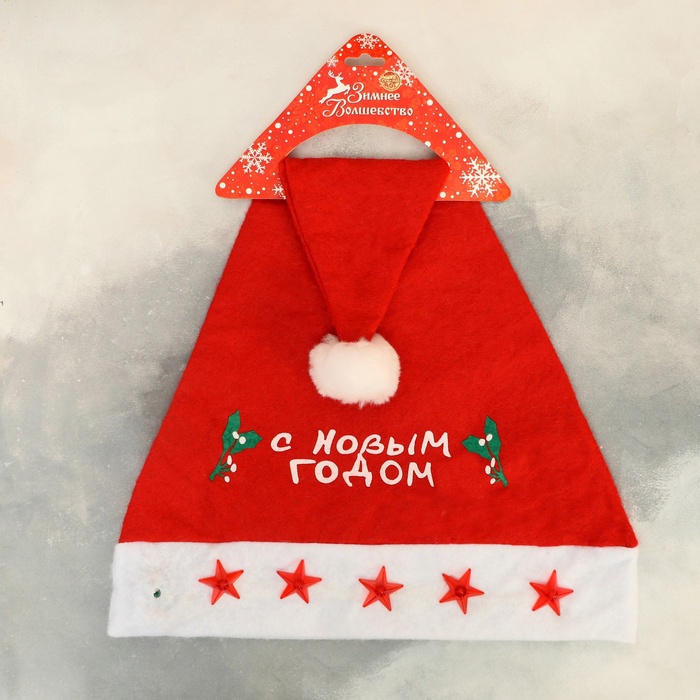 Красный светящийся новогодний колпак с надписью ”С новым годом” создаёт праздничное настроение и подчёркивает образ Деда Мороза. Размер 28?40 см обеспечивает удобство и комфорт при использовании на зимних торжествах и фотосессиях.