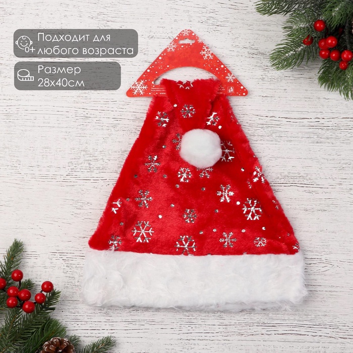 Колпак новогодний «Серебристые снежинки» 28?40 см, красный