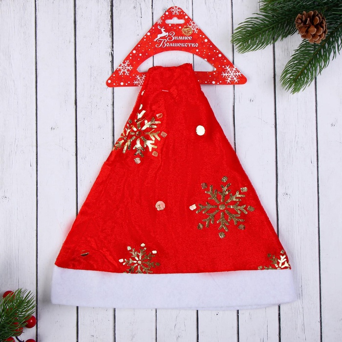 Колпак новогодний «Сияющие снежинки» 28?36 см, красный