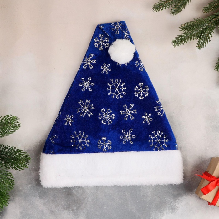 Колпак новогодний «Снегопад» с меховым кантом, 29?40 см, синий