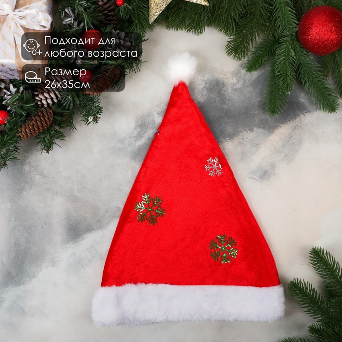 Колпак новогодний «Снежинка» 26?35 см, красный