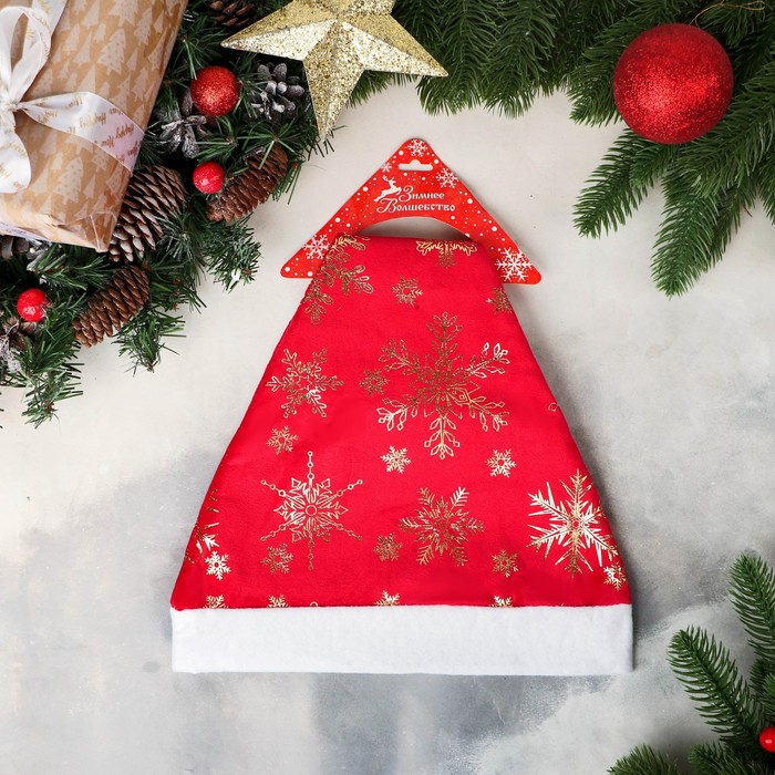 Колпак новогодний «Снежинка» 26?35 см, красный