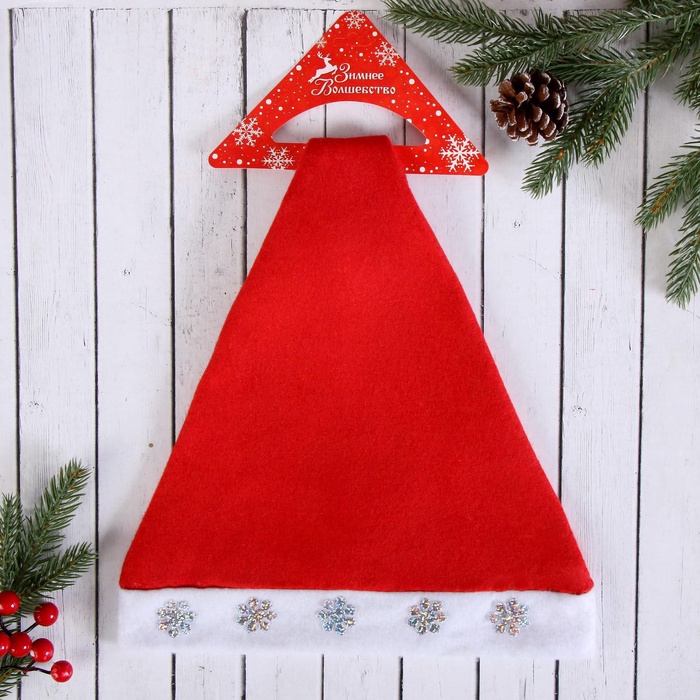 Колпак новогодний «Снежинка» с наклейкой, красный