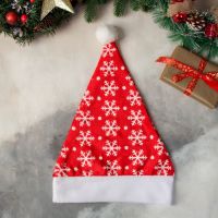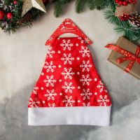 Текстильный новогодний колпак с красным фоном и узором из снежинок в горохе станет ярким акцентом праздничного образа. Изображения Деда Мороза, гнома, эльфа и клоуна добавляют веселья и создают атмосферу зимнего праздника.
