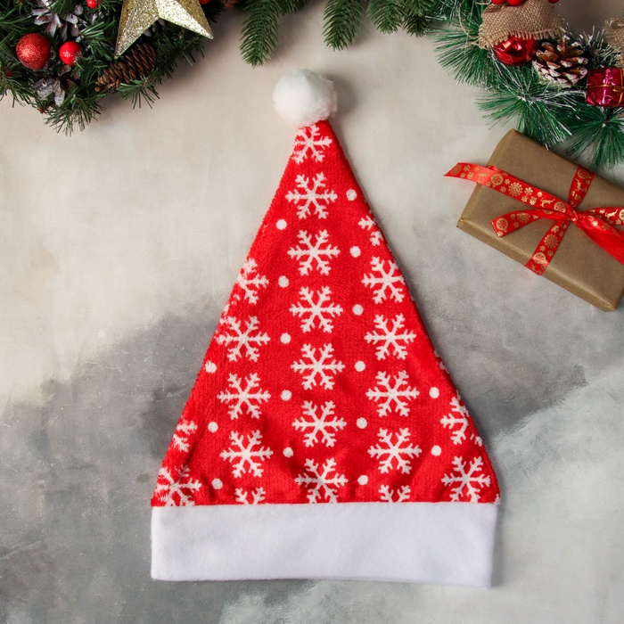 Колпак новогодний «Снежинки в горохе» 28?37 см, красный