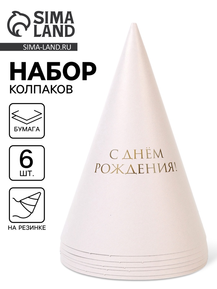 Колпак праздничный бумажный «С Днём рождения», универсальный, 6 шт.