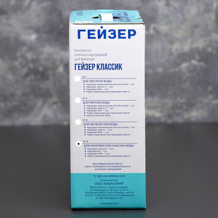 Набор содержит в себе всё необходимое для поддержания высокого уровня комплексной очистки воды в фильтрах «Гейзер Классик».
