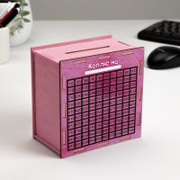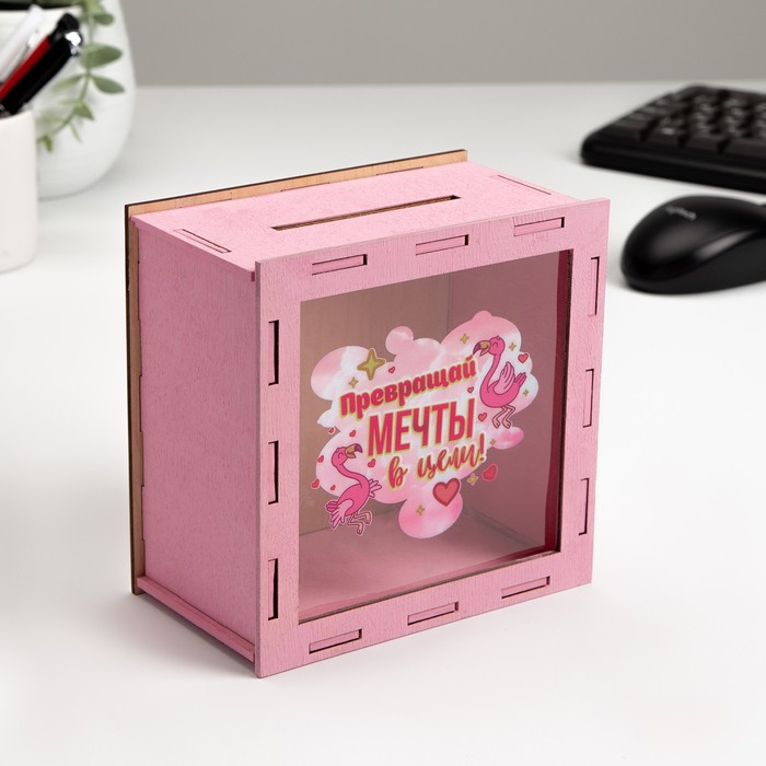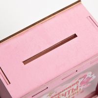Цвет|Розовый;Высота, см|14;Тематика праздника|8 Марта;Материал|Фанера;Покрытие|Краска;Тип копилки|Открытый;Особенности|С окошком;
