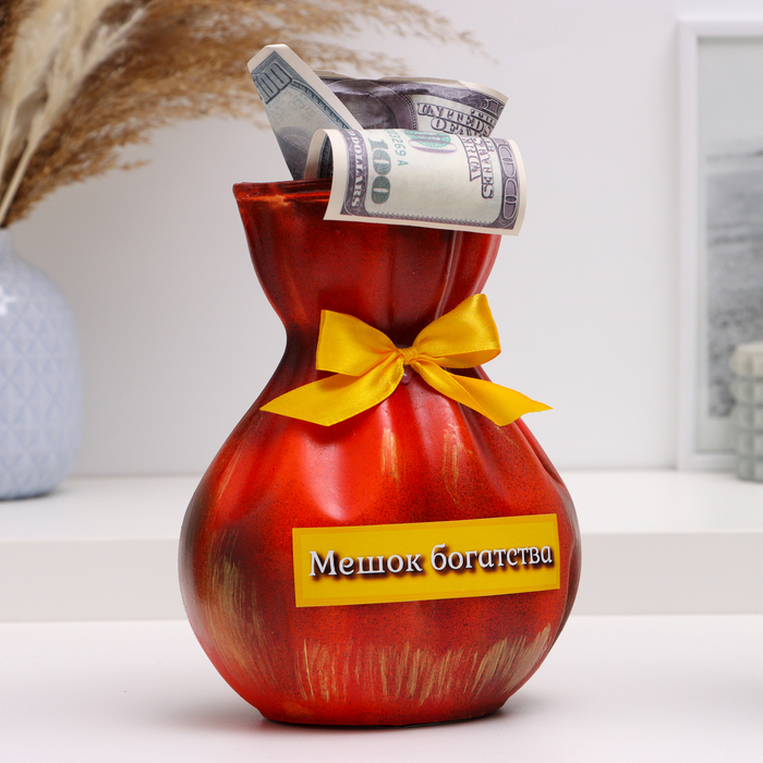 Цвет|Красный;Высота, см|22;Тематика|Надписи, цифры, буквы;Материал|Гипс;Покрытие|Лак;Тип копилки|Закрытый;Уточняющий вид|Мешок;