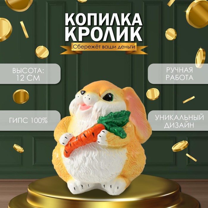 Копилка для денег «Кролик с морковкой рыжий», гипс, 12 см