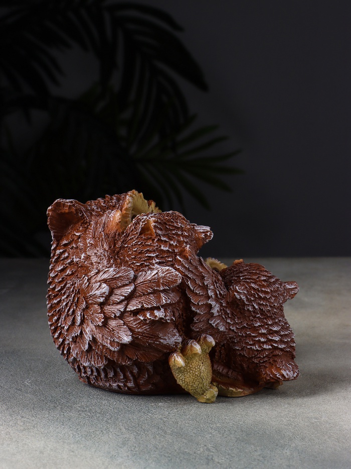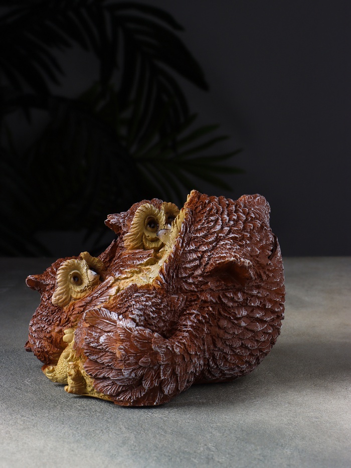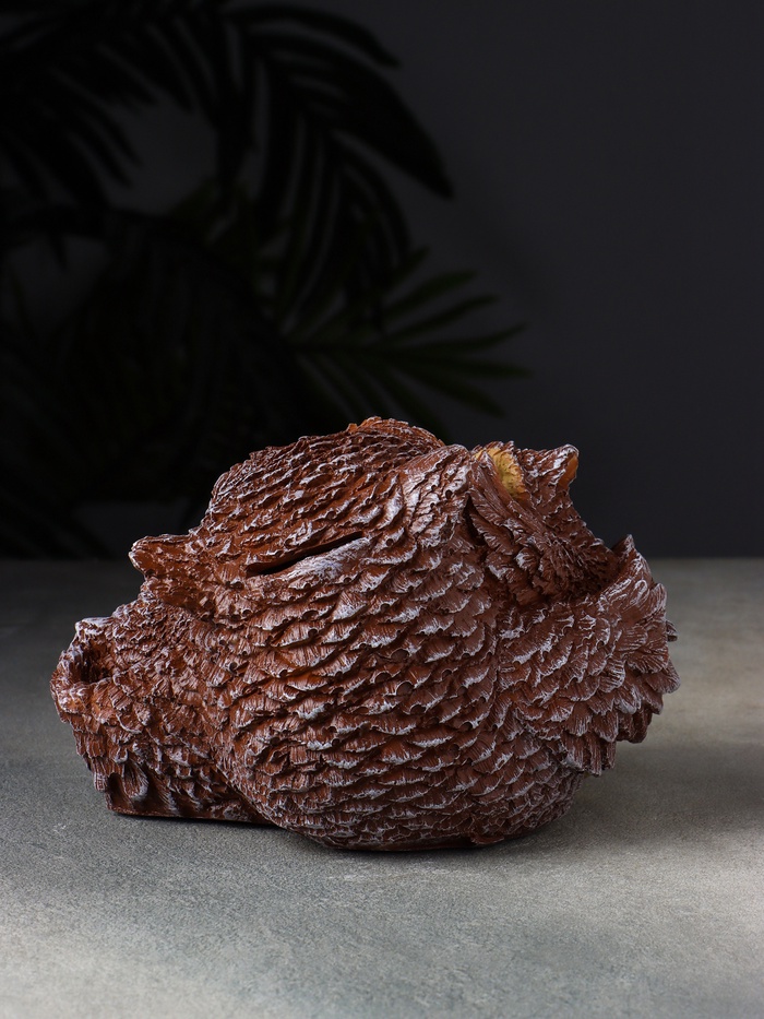 Изящный образ мудрой птицы, воплощённый в аккуратной фигурке — это не просто декоративный элемент, но и надёжное хранилище для сбережений. Копилка выполнена в виде ушастой совы, символа благополучия и семейного уюта. Её дизайн сочетает в себе гармонию линий и насыщенность оттенков, что делает изделие универсальным дополнением к любому интерьеру.
