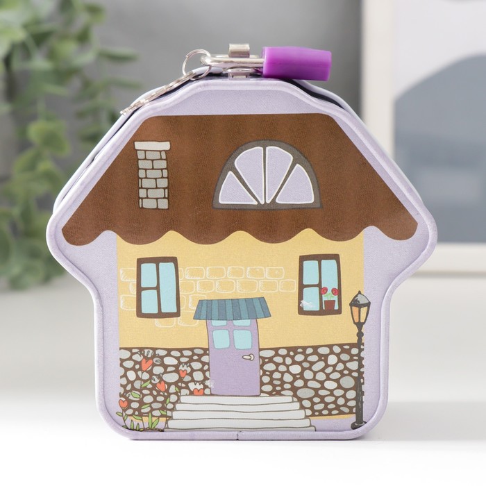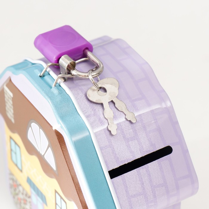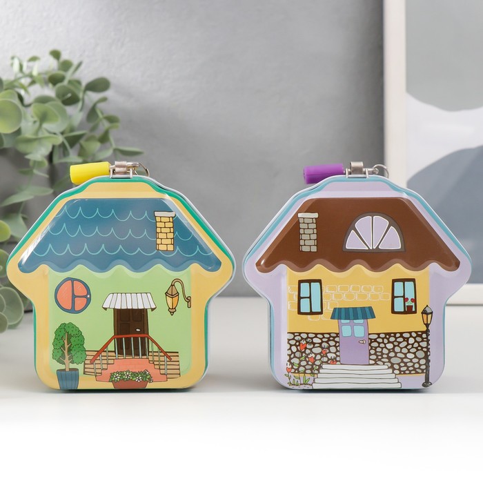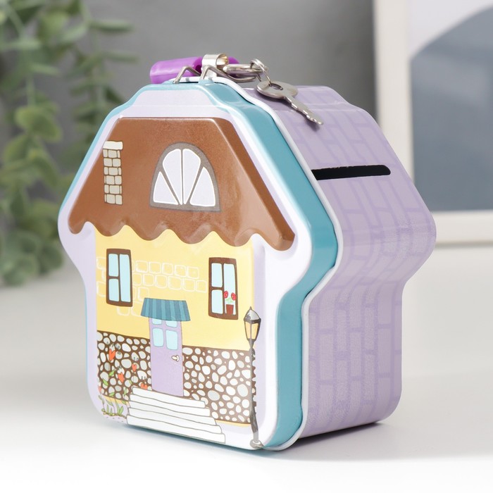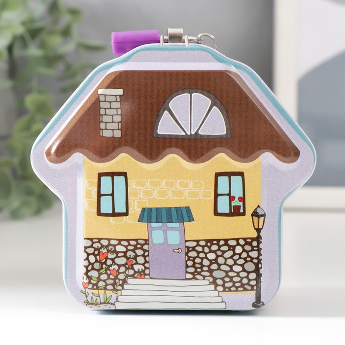 Копилка для денег с замком и ключом «Домик», металл, 5?10?9.2 см, МИКС
