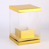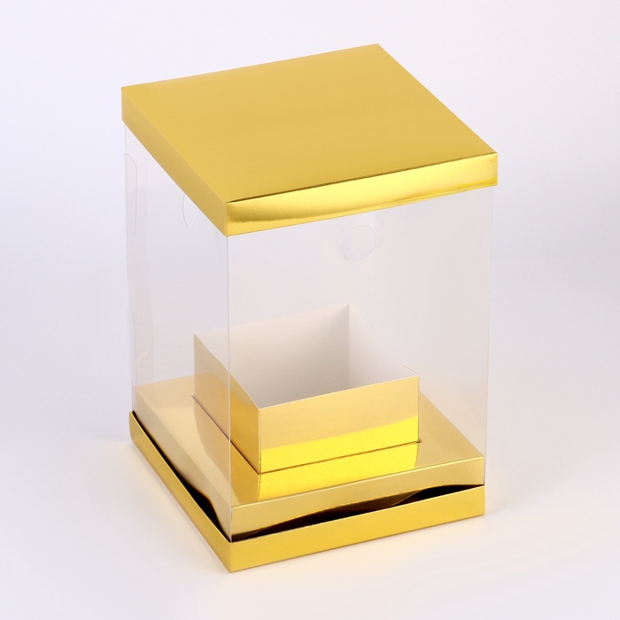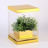 Коробка для цветов и букетов, с вазой и PVC окнами складная, 16?23?16 см, золото