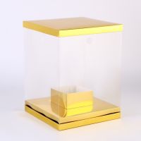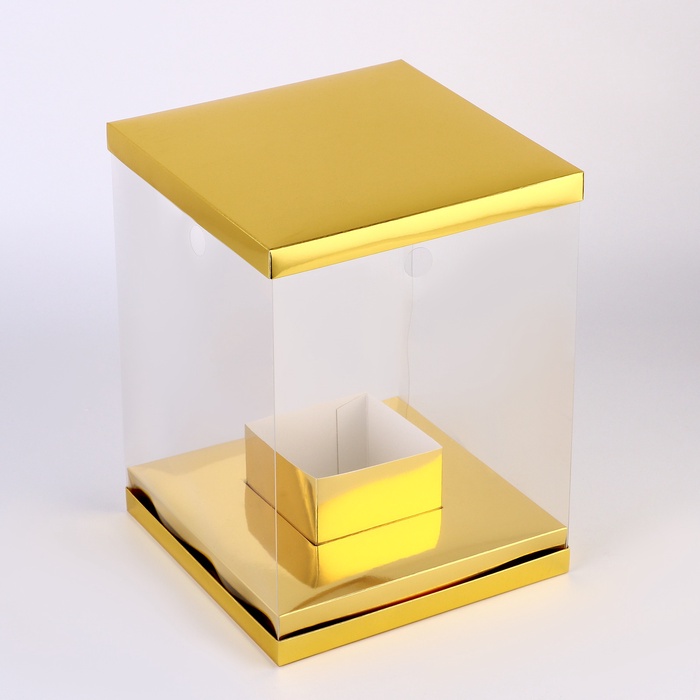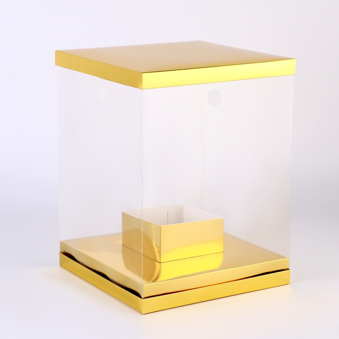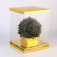 Коробка для цветов и букетов, с вазой и PVC окнами складная, 23?30?23 см, золото