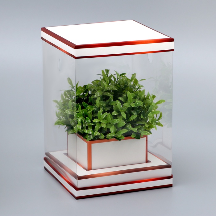 Коробка для цветов с вазой и PVC окнами складная, бронза, 16?23?16 см