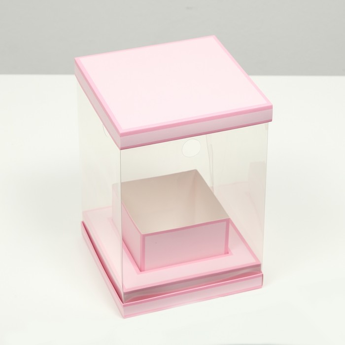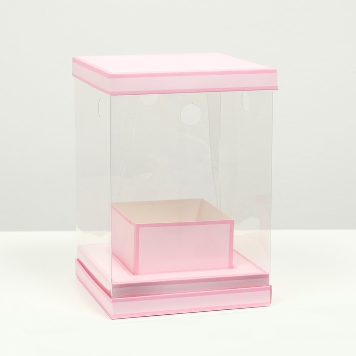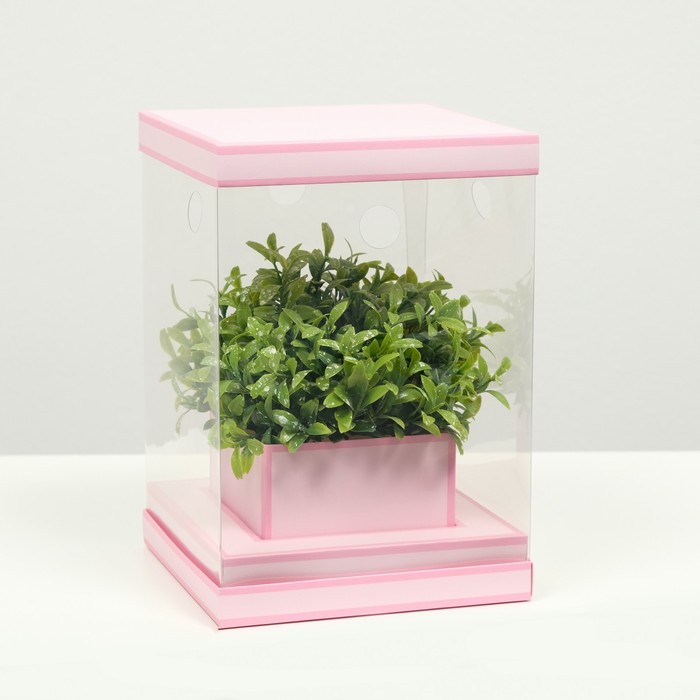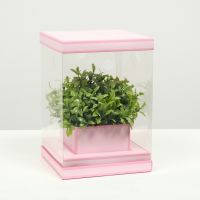 Коробка для цветов с вазой и PVC окнами складная, розовый, 16?23?16 см