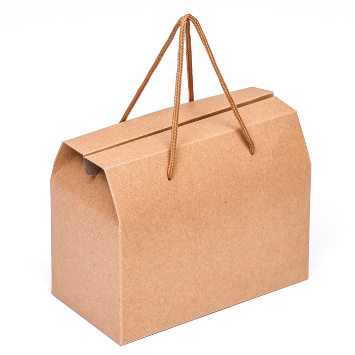 Наличие прочных ручек делает коробку-пакет легкой в переноске и придает упаковке дополнительное удобство.