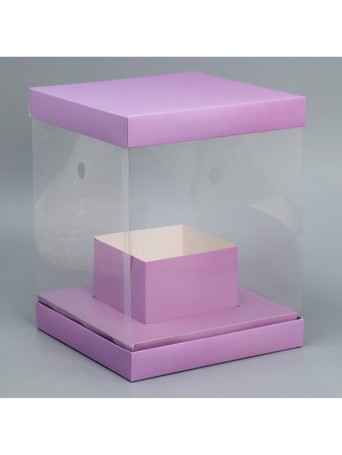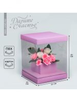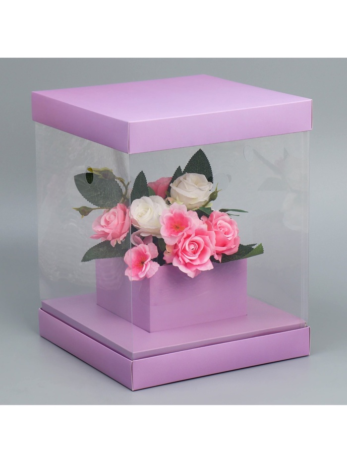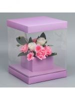 Коробка подарочная для цветов с вазой и пластиковыми окнами складная, упаковка, «Лаванда», 23 х 30 х 23 см