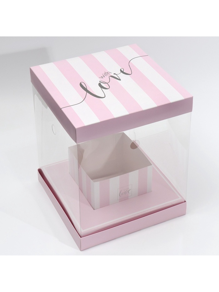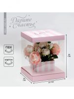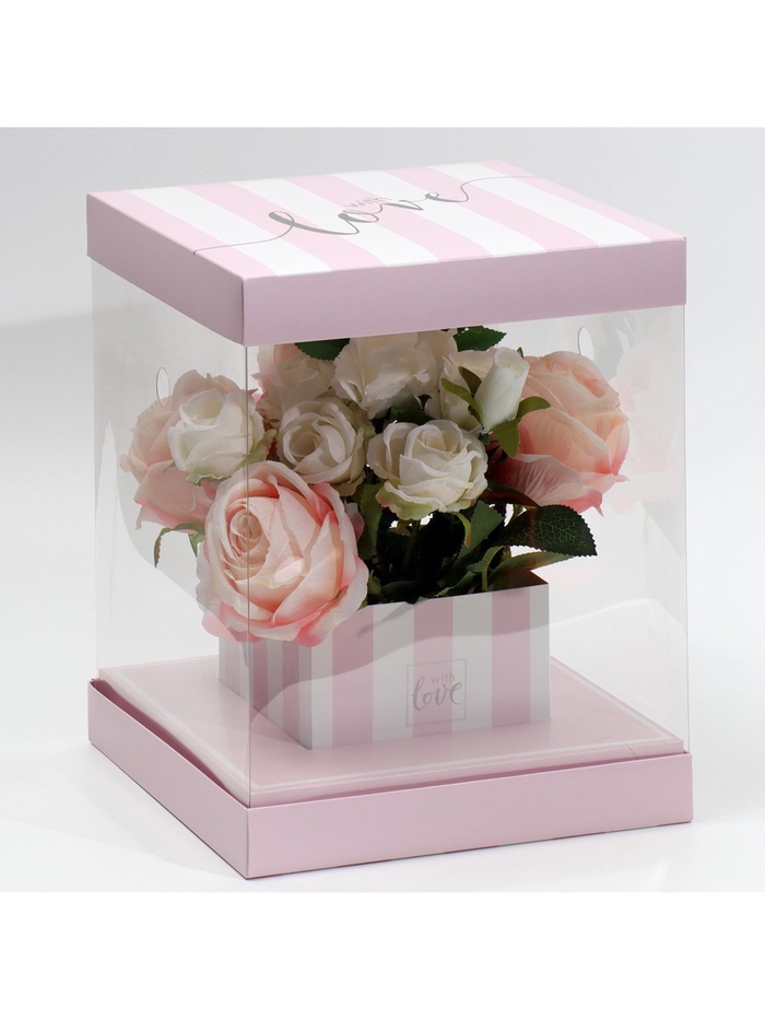 Коробка подарочная для цветов с вазой и пластиковыми окнами складная, упаковка, With Love 23 х 30 х 23 см