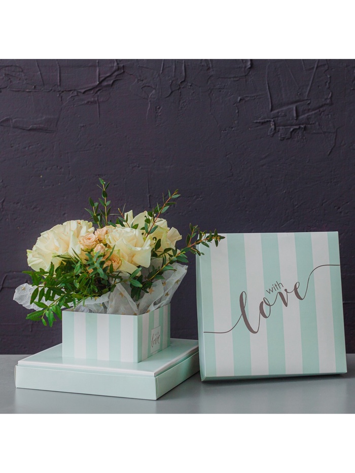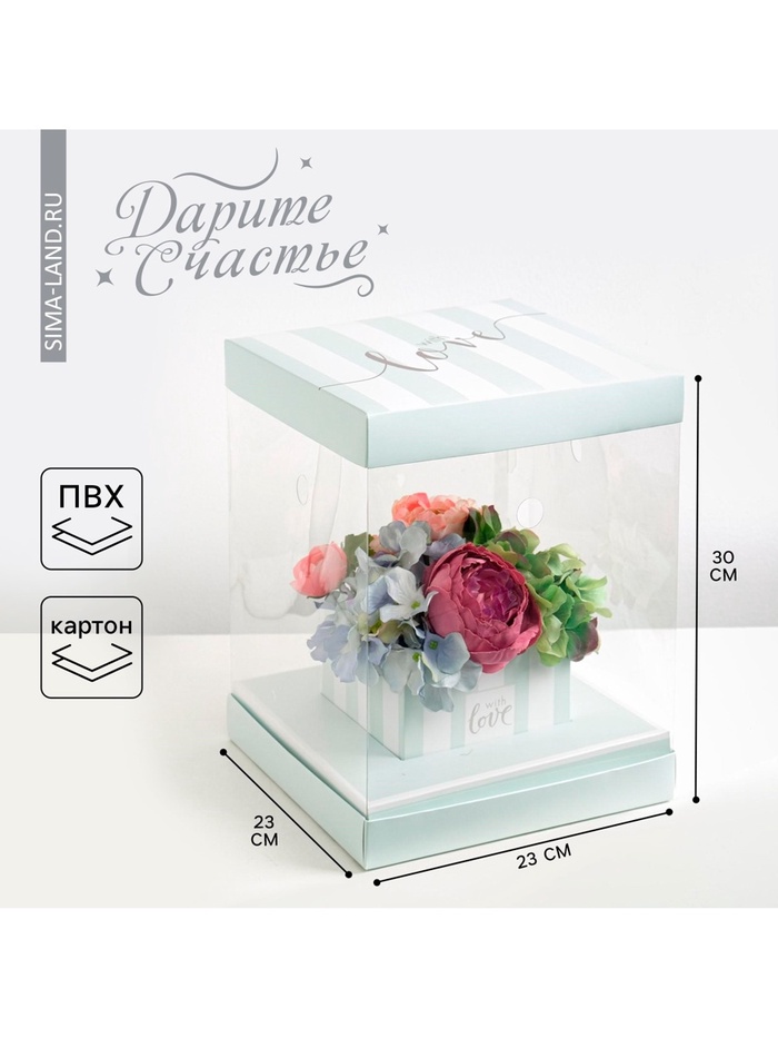 Коробка подарочная для цветов с вазой и пластиковыми окнами складная, упаковка, «With love», 23 х 30 х 23 см