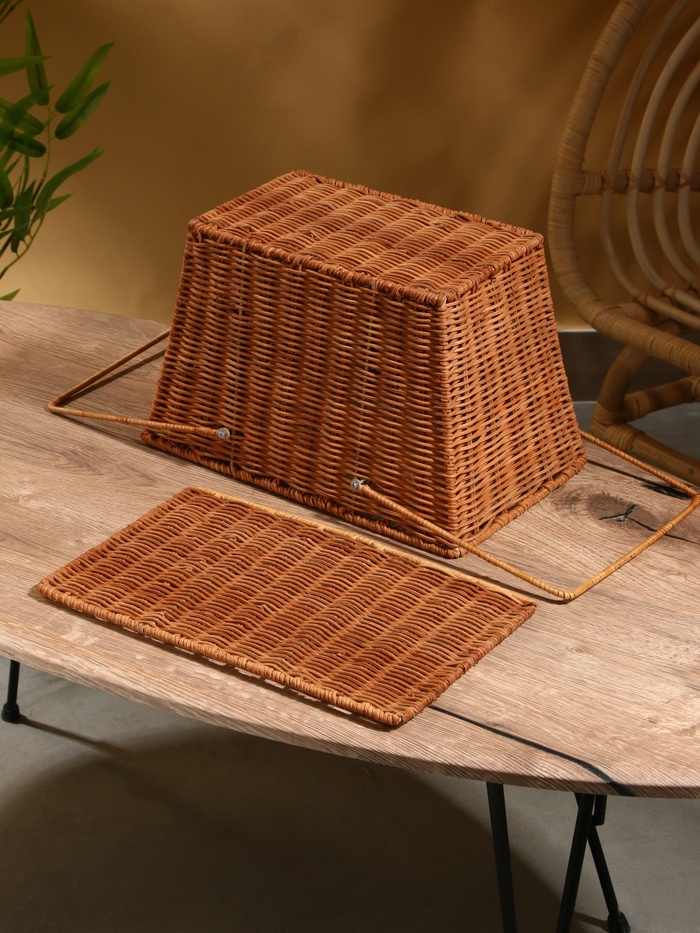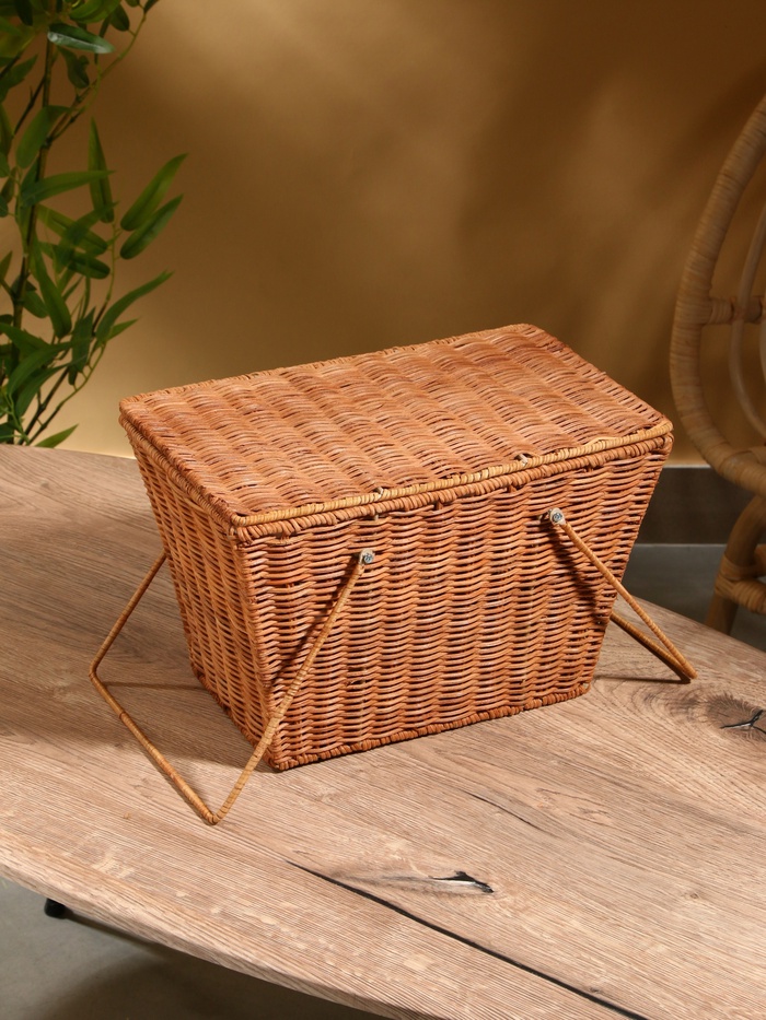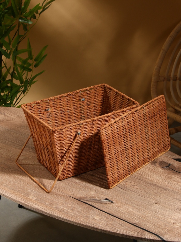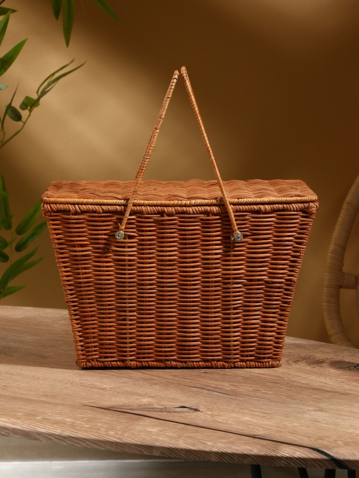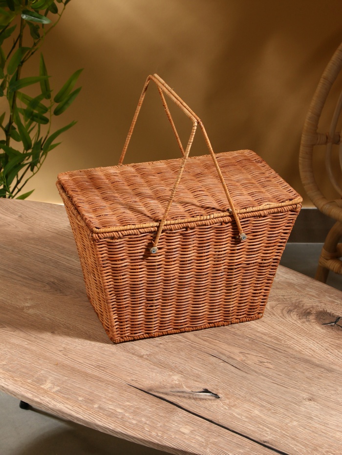 Плетёная корзина для пикника из натурального ротанга — удобный аксессуар для выездов на природу. Компактный размер подходит для хранения закусок, напитков и посуды. Плотное плетение сохраняет форму, а прямоугольный дизайн упрощает переноску и размещение в багажнике.