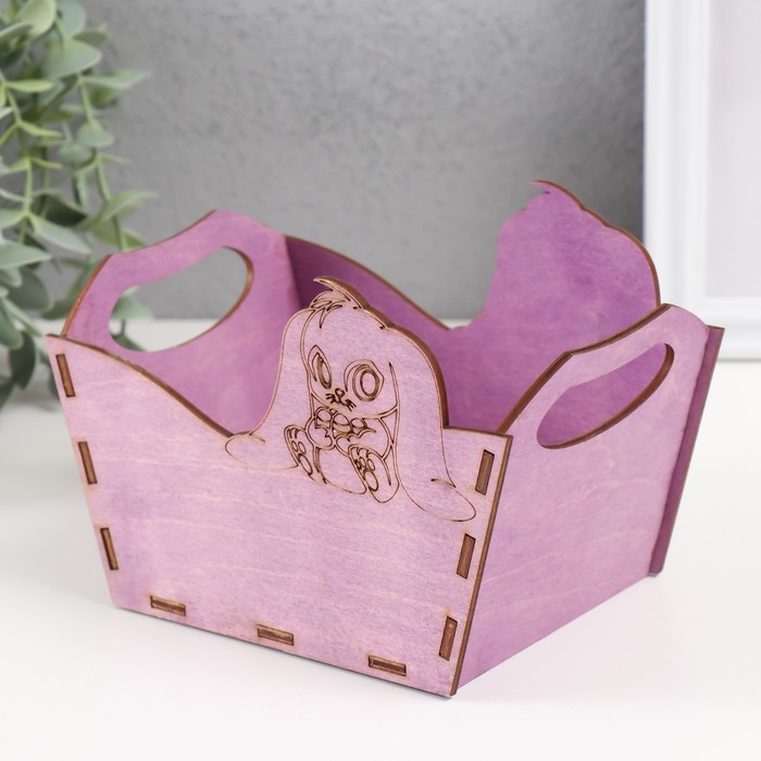 Набор|Нет;Цвет|Сиреневый;Форма|Фигурная;Длина, см|10.5;Ширина, см|11;Высота, см|15.6;Тематика|Животный мир;Тематика праздника|Пасха;Вид дерева|Фанера;Материал|Фанера;Покрытие|Без покрытия;Особенности шкатулки|Корзинка;