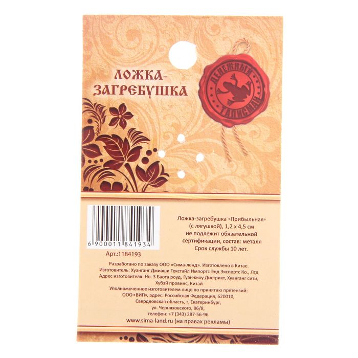 В финансовых вопросах нет незначительных деталей, поэтому специально для вас мы создали серию денежных оберегов, которые принесут благополучие. Ложка-загребушка «Прибыльная» с золотой рыбкой — это талисман, способный приманить большой денежный поток в ваш кошелёк. Аксессуар изготовлен из металла и преподносится на эксклюзивной дизайнерской подложке. Благодаря удобному и практичному дизайну оберег можно носить в кошельке или сумочке.