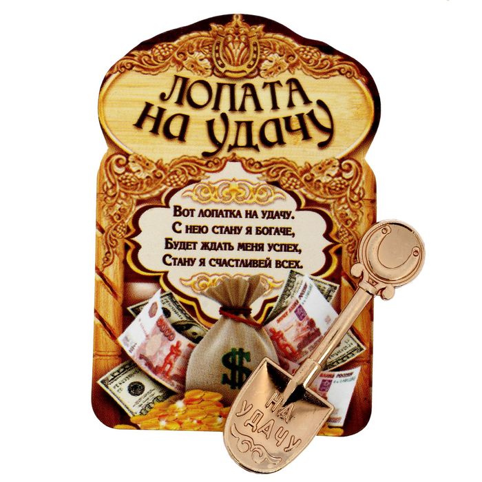 Для активации положите лопатку в кошелёк, приговаривая: «Лопатка, счастье загребай, меня удачей наделяй». Металлический сувенир весом всего 2 г преподносится на эксклюзивной дизайнерской подложке в пакете с европетлёй.