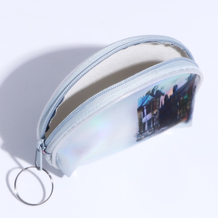 Серебристый кошелёк с молнией — практичный и стильный аксессуар для девочки, который учит бережному отношению к деньгам. Его компактная форма и застёжка по всей длине обеспечивают безопасность монет и купюр, а оформление с изображением архитектуры добавляет элемент путешествия в повседневную жизнь. Это не просто монетница — она становится маленьким спутником в детских открытиях.