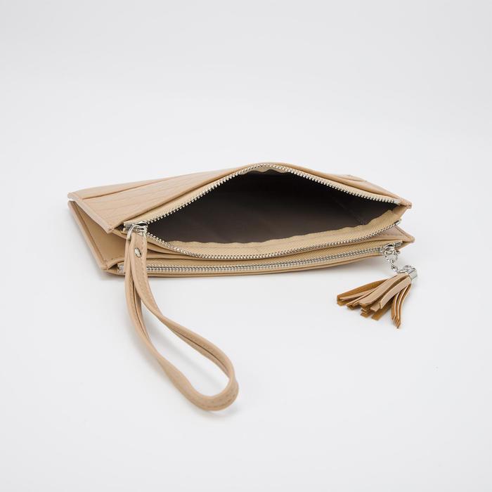 Кошелёк женский на молниях с ремешком, 21.5?2?10 см, бежевый